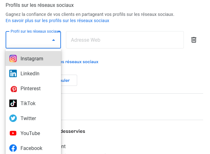 Ajoutez vos réseaux sociaux sur votre fiche Google